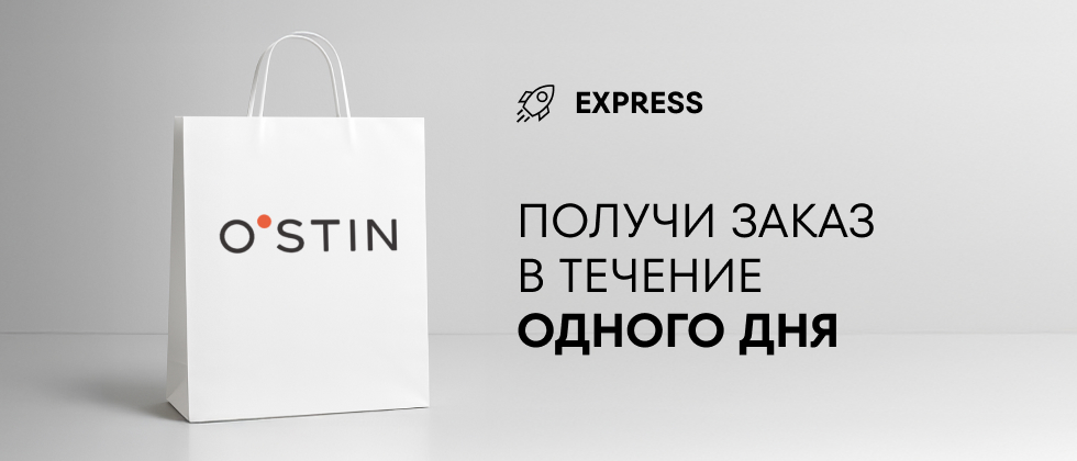 Покупай онлайн и экономь время: теперь заказы в O'STIN можно получать экспресс-доставкой! Оплати на сайте или в мобильном приложении в течение 15 минут и выбери способ доставки Express.