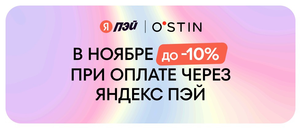 Весь ноябрь новые пользователи сервиса Яндекс Пэй получают скидку 10% на покупки в O'STIN, а постоянные пользователи — 5% при оплате через Яндекс Пэй.